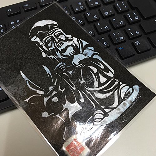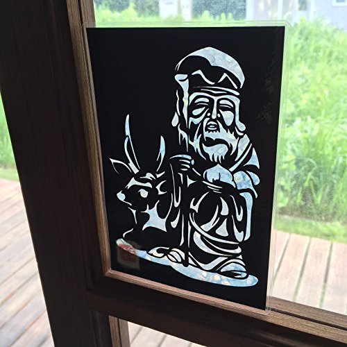 Cutout picture Japanese art collage KIRIE “Seven Lucky God · Zyurojin” Seven Deities(Gods) of Good Fortune Made by Washi(Japanese paper) Blurred sky blue, 4” x 6”