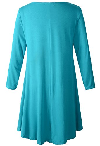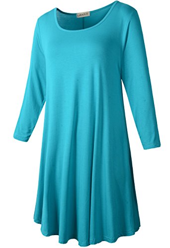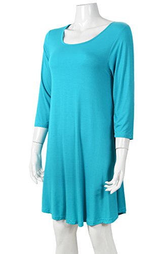 Smooth stretch fabric, crew neck, 3/4 sleeves, swing cut.