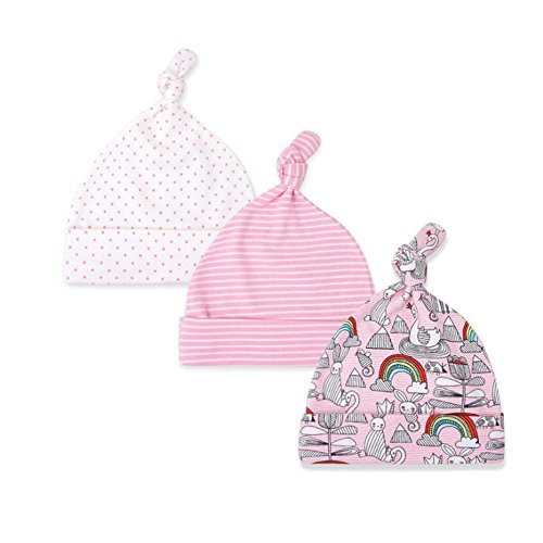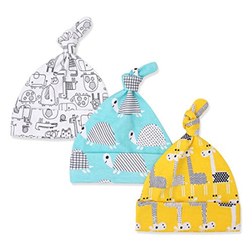| CuteOn 3 PCS Newborn Toddler Cotton Sleep Beanie Hat Adjustable Knot Hats for Unisex Baby 0-6 Months |