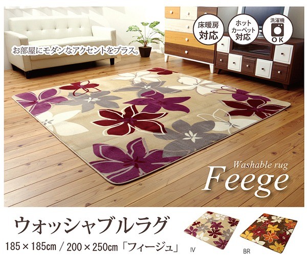 なめらかタッチ ラグ 洗える 『フィージュ』 ブラウン 約200×250cm