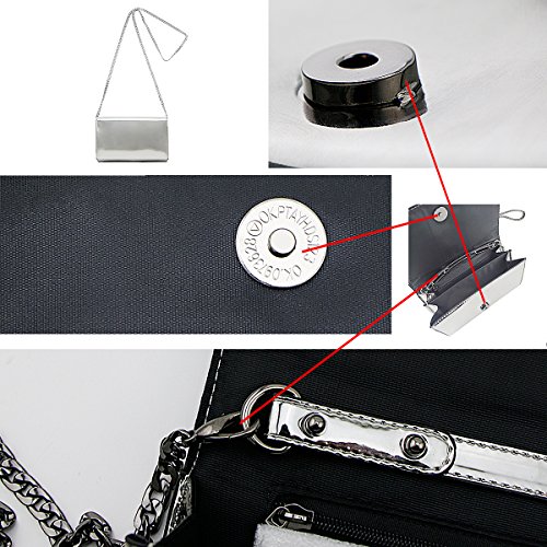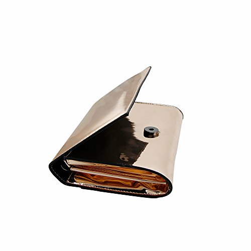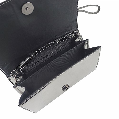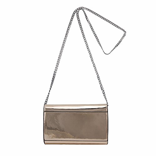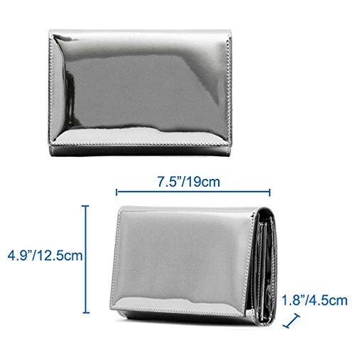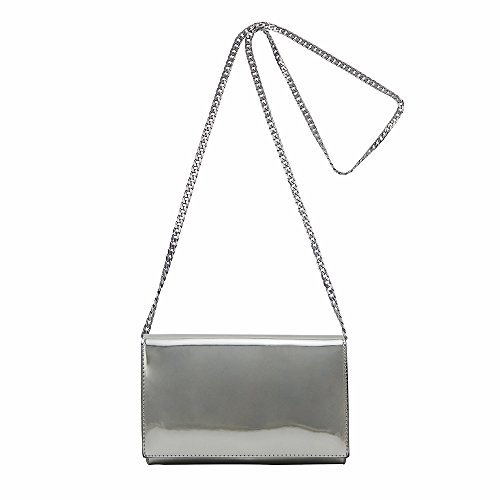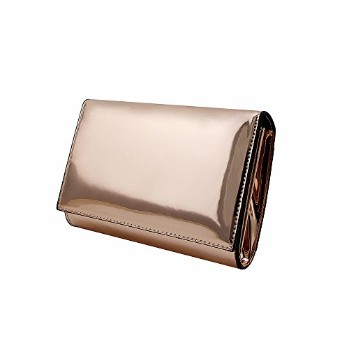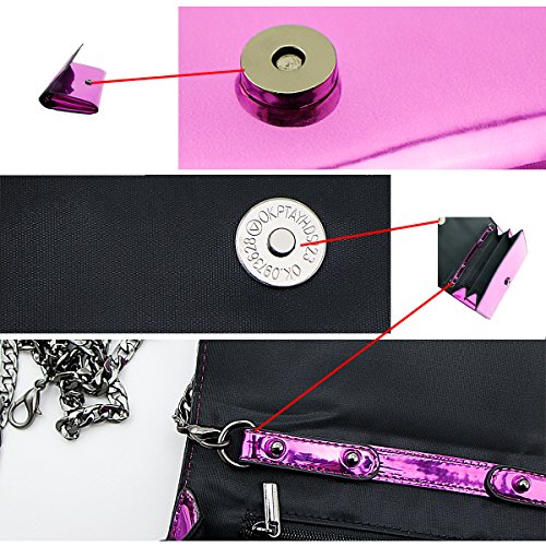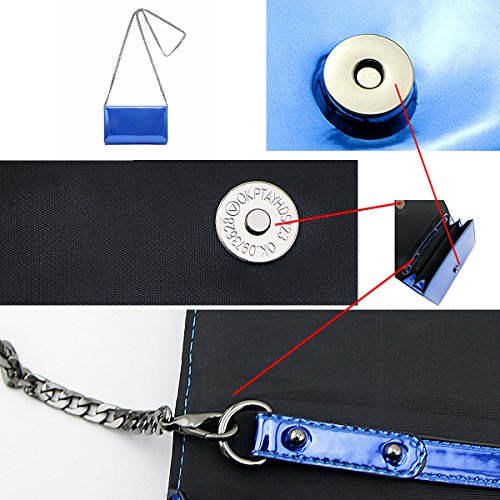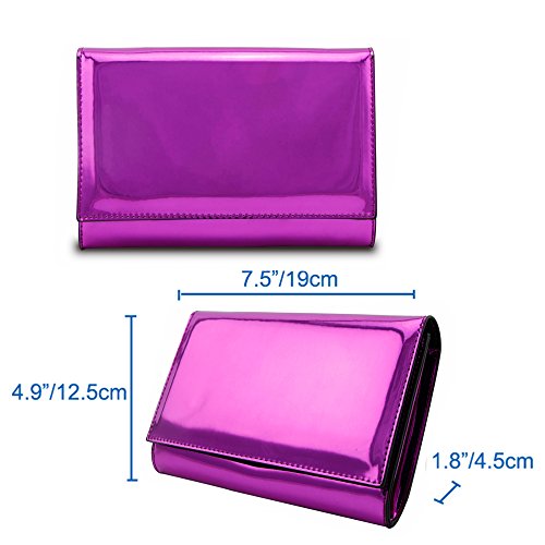 Product Description ?Main material: PU Patent Leather; Inner material:Nylon ?Size: 7.5x4.9x1.8" (19x12.5x4.5cm) ?Structure : 1*Outside pocket,2* Inner capacitys, 1*Zipper inner pockets(Shows as the picture)br> ?Kiss-lock closer,Shoulder strap can be adjusted and removed, simply from the shoulder/crossbody bag into a clutch purse. ?Fashion mirror bright patent leather design.Suitable for shopping, dating, travel, nightclubs, banquets ★Note:the color is close to the pictures show. -Silver : dark silver -Rose gold: close to the champagne -Blue : sapphire -Purple : close to the hot pink(Rose red)