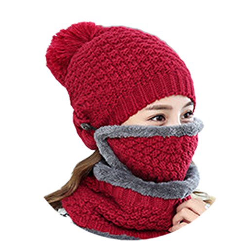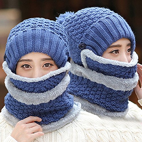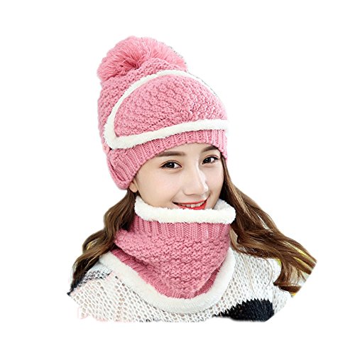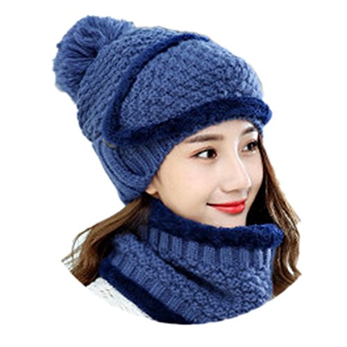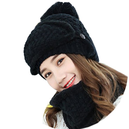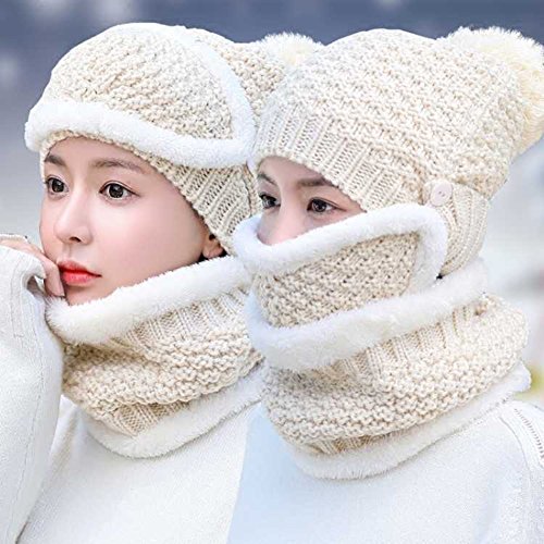 Modelshow Wool Cap Scarf Knit Hat chapeau Faux Fur Plush Top Thick Beautiful With Ear Protectio...