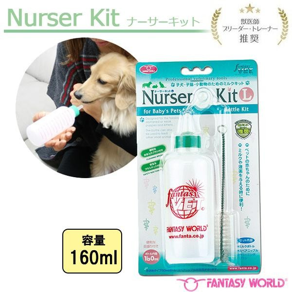 仔犬、仔猫、小動物はもちろん、シニアペットにもご利用いただける安心ミルクボトル。ミルクや水、液薬を与える時に最適。 製造国:中国 素材・材質:本体:プラスチック乳首:シリコンラバー 商品サイズ:Φ5×H15.5cm 仕様:容量:160ml 付属品:スペア乳首×1、お手入れ用ブラシ×1 ※サプライヤー直送品 ご注文後2~3営業日後の出荷となります【商品名】FANTASY WORLD 仔犬 子猫 小動物のための安心ミルクボトル ナーサーキット 160ml Lサイズ PNK-L