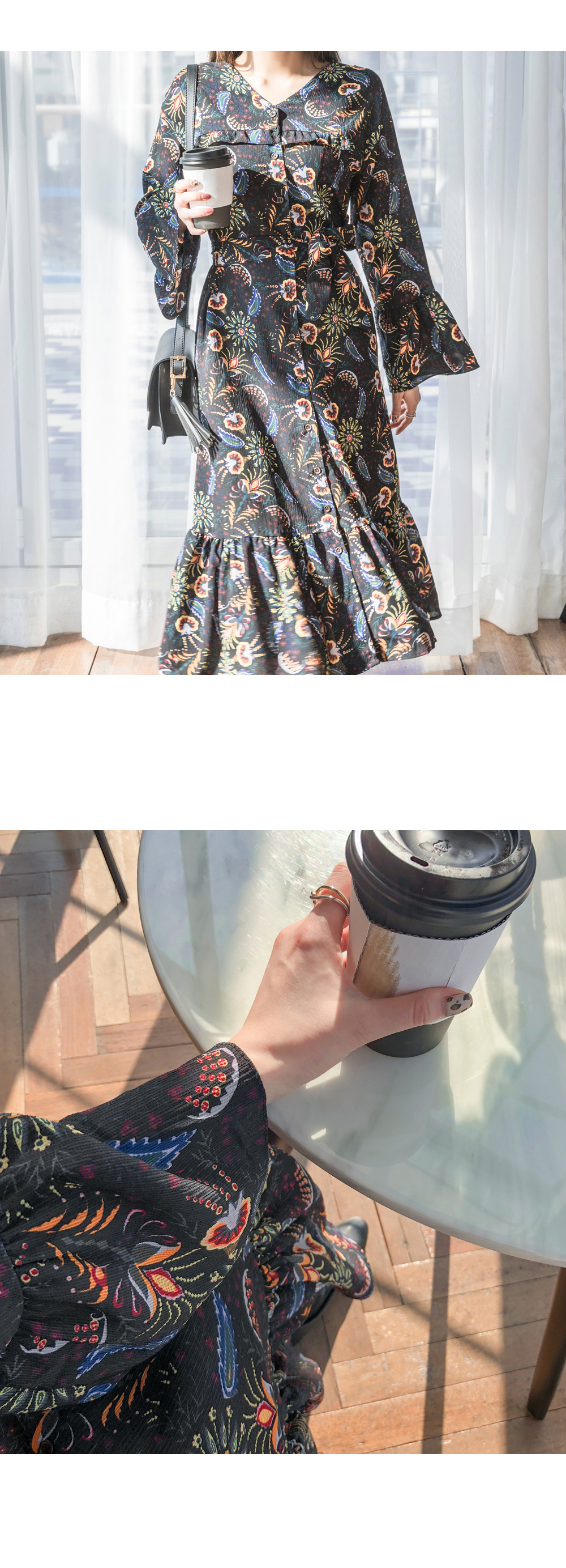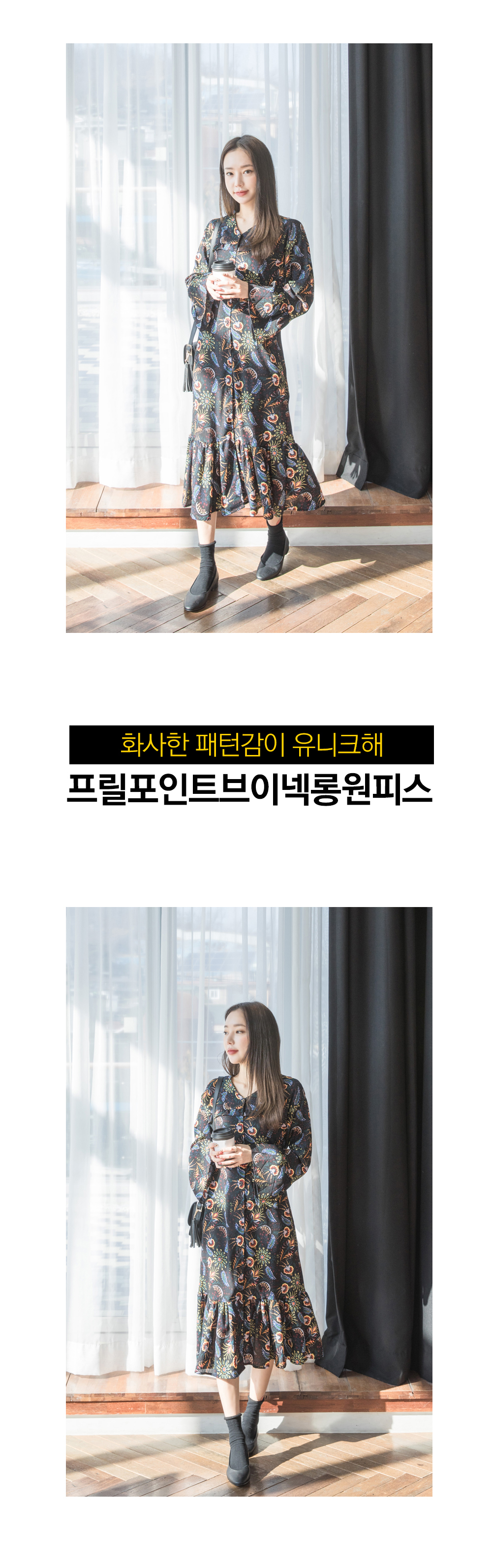 프릴포인트 브이넥 롱 원피스