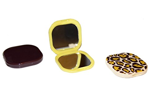 Viva Women's Square Brown and Yellow Design Compact Pocket Mirror, Multi (Pack of 3)