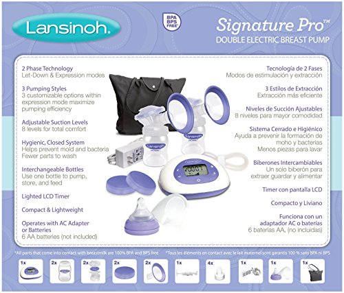 Understanding every mom is different, the Signature Pro Double Electric Breast Pump was created for moms who need to pump frequently. It's developed with three customizable pumping styles so you can select the perfect setting to maximize your milk production and comfort. Signature Pro is also a part of the Lansinoh Pump-Store-Feed solution. You can now pump directly into one bottle, attach NaturalWave Nipple to feed right away or seal to store breastmilk until needed, a smooth process to providing what baby needs. • Two modes, Stimulation & Expression, for more milk in less time