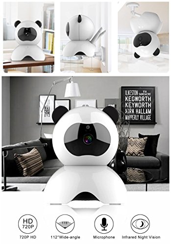 -. Feature : 【 Cute Cartoon Panda Camera Fit to Your Home and Kids】 It is not only a camera, it is also an artwork! The Cute Cartoon Design make it a lovely toy hidden in your room, not a standout camera in old fashion, this Toy Panda will sooth your baby ! / 【Wifi Pan Tilt Camera HD 360 Coverage】 Remote live video streaming with pan (345º), tilt (65º) ,watch by smart phone, tablet, and PC. Easy Install anywhere with bracket, table mount, ceiling mount, wall mount as you want. 112°wide-angle advanced glass lens combined with Digital Zoom IN /Zoom Out function create a complete 360°coverage. don't miss any corner. / 【Nanny Camera Pet Cam with Powerful function】 Motion detection alarm & recording,Timing recording,sound detection, two way audio,High volume speaker ,Night vision,Alarm Push Notification,Typically used as Baby Monitor, Nanny Camera,Pet Camera, Elder Monitor, Home Security and Surveillance , Business Security and etc. / 【Powerful P2P camera HD 720p wifi】 1.0 Mega Pixel high-definition video stream. Echo cancellation and noise suppression technology, the perfect two way talking effect, P2P cloud account let you can add camera just one time with your login account and can login later to see all camera you ever added by any device / 【Easy Setup and Install Cam】Smart-link tech to connect to wifi in a easy way ,free download App for smart phone(IOS,Android) and PC client software, easily search stored video by Alarm video,Scheduled recording, Manual recording. 1 year Warranty