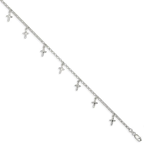 ICECARATS DESIGNER JEWELRY 925 STERLING SILVER 9 CROSS RELIGIOUS ANKLET FOR WOMEN ANKLE BEACH CHAIN BRACELET