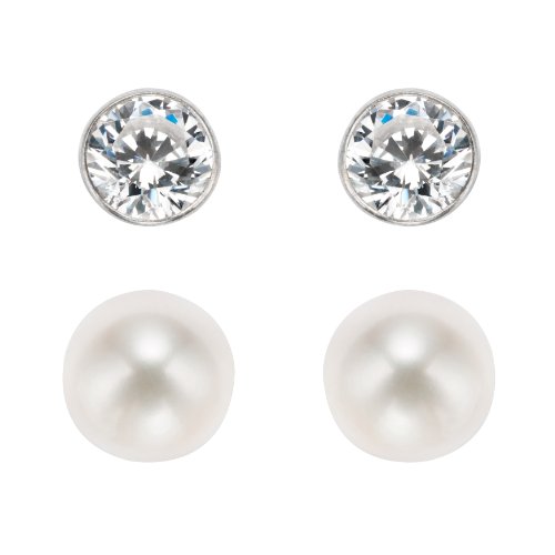 These elegant stud earrings from Pearlyta are beautifully-crafted of highly polished 14-karat white gold. This jewelry set features a pair of cubic zirconia studs and a pair of freshwater pearl studs.