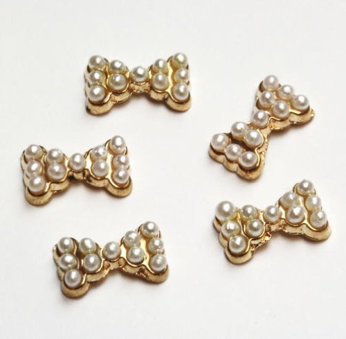 色: リボン(ブロンズ×パール) 大きさ(約):0.8-1.1×0.25-0.3cm 素材:ブラス、アクリル 中国製