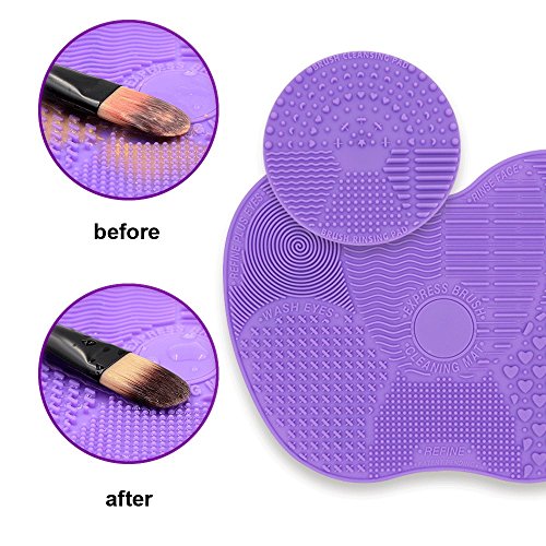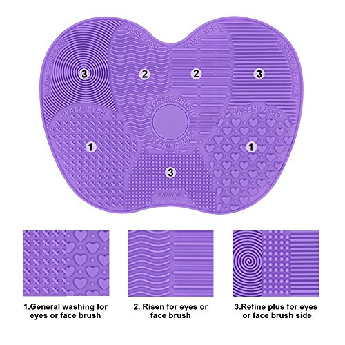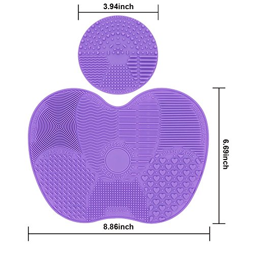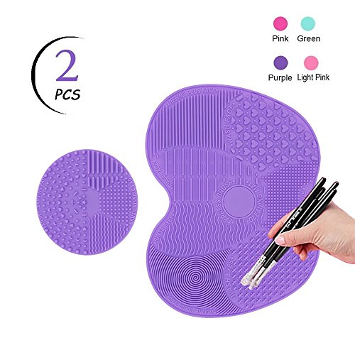 TailaiMei Makeup Brush Cleaning Mat,Set of 2 Silicone Cosmetic Washing Tool with Suction Cups(Purple)
