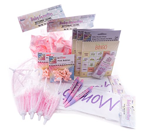 -. Title : Baby Shower Party - Its a Girl! Bingo Game, Mom To Be and Grandma To Be Sashes, Pink Umbrella Set, Miniature Babies, Baby Girl Pens, Mints, Napkin Holders | Girl Shower Party Supplies