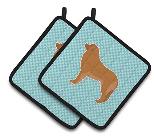 Caroline's Treasures Leonberger Checkerboard Blue Pair of Pot Holders BB3758PTHD, 7.5HX7.5W, Multicolor
