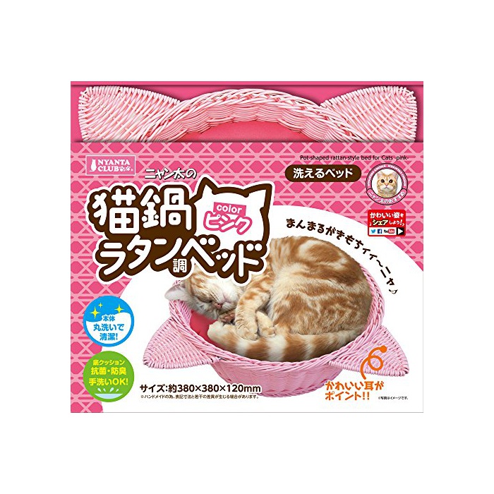 원본상품명:マルカン 猫鍋ラタンベッド ピンク CT-343