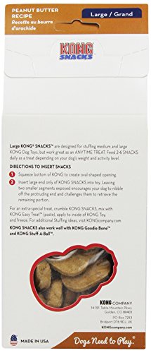 -. Binding : Misc. -. Brand : KONG -. Feature : Low fat / Easily digestible / Made from 100% natural peanut butter / Made in the USA / Designed for stuffing inside medium and large-sized KONGs -. Label : KONG -. Manufacturer : KONG -. Model : XR1-PARENT -. MPN : XR1-PARENT -. PackageQuantity : 1 -. PartNumber : XR1-PARENT -. ProductGroup : Pet Products -. ProductTypeName : PET_SUPPLIES -. Publisher : KONG -. Size : Small -. Studio : KONG -. Title : KONG Stuff'N Snacks, Peanut Butter -. Warranty : Guarantee against manufacturer defect.