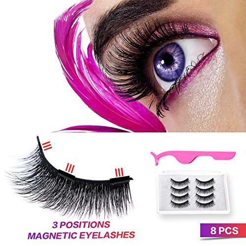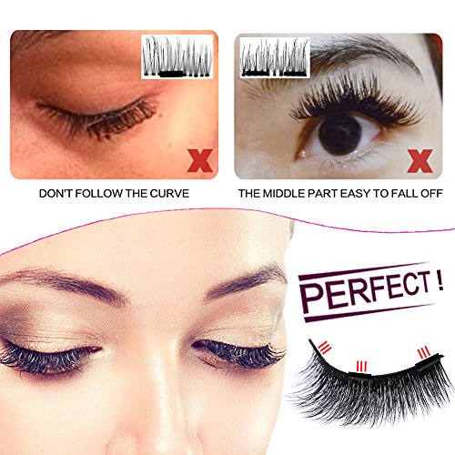 - COMPARE WITH OTHER MAGNETIC FALSE EYELASHES! One magnet in the middle of the eyelash design,this is too straight so that they do not follow the natural curve of the eye,two ends easy fall off; two magnet false eyelashes design is follow the natural curve but the middle part easy to fall off . so the newest 3 position magnet false eyelashes is perfect choose.