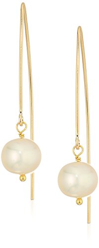 Marquee shape Ear Wire with Cultured Freshwater Pearl Dangle Earrings