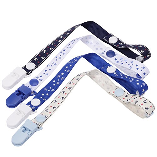 -. Title : Kolamom Pacifier Clip Toys Holder 4 Pack for Boys and Girls One-Hand Adjustable Plastic Snaps