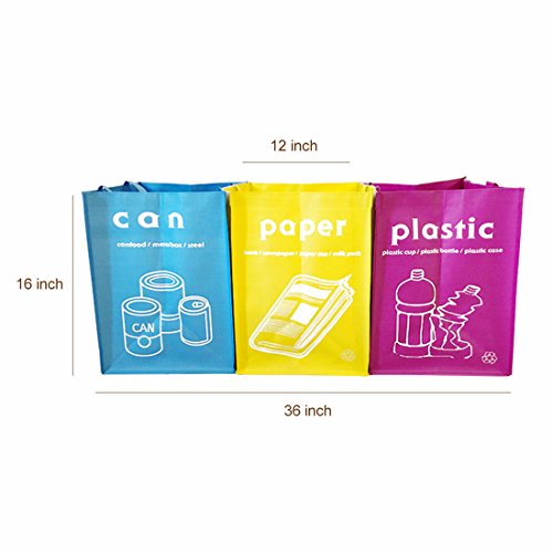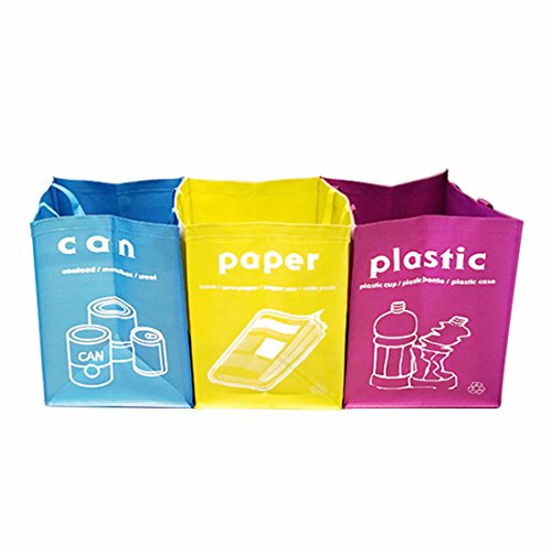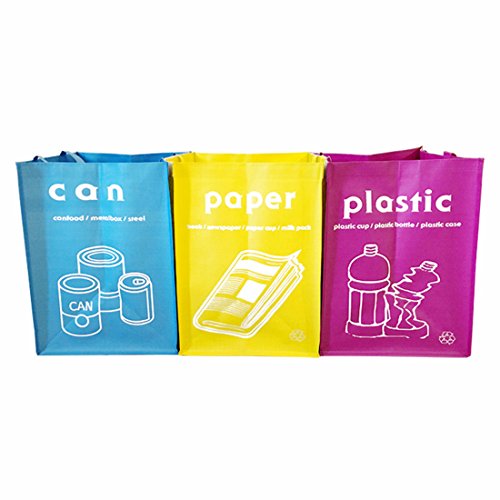 Studio : GARASANI Publisher : GARASANI Binding : Kitchen Product Description This recycle bags make your house clean Separate recycling bins 3 pieces For CAN, PLASTIC, PAPER Waterproof coating, water washable Handling bag type, easy carrying Connected to each other using velcro fasteners or Separately, one by one Collect 3 pieces together once with sturdy handle and go carrying it 0