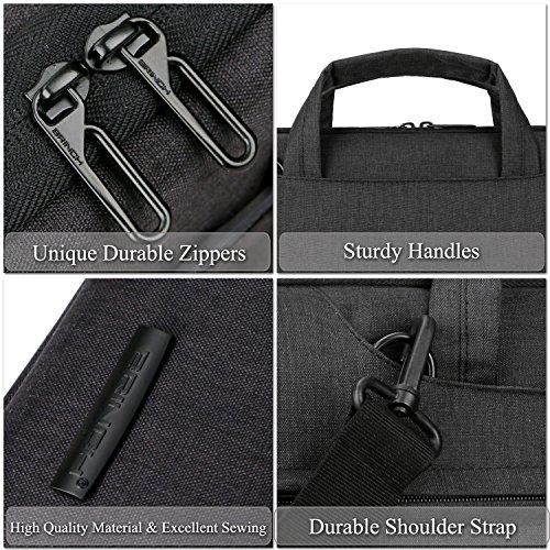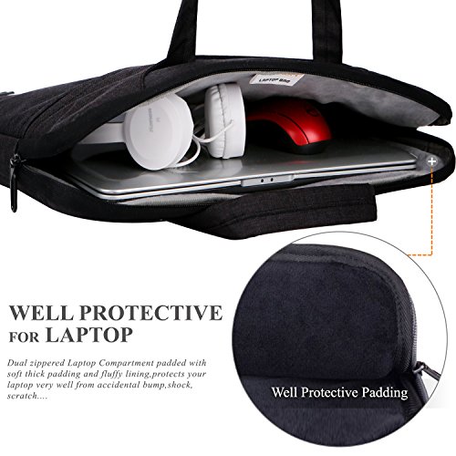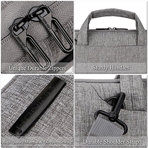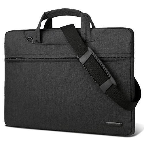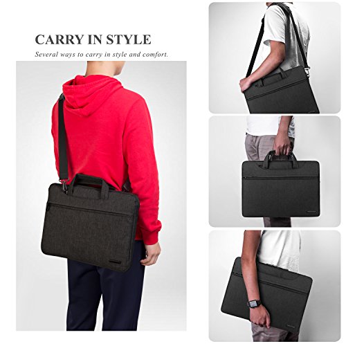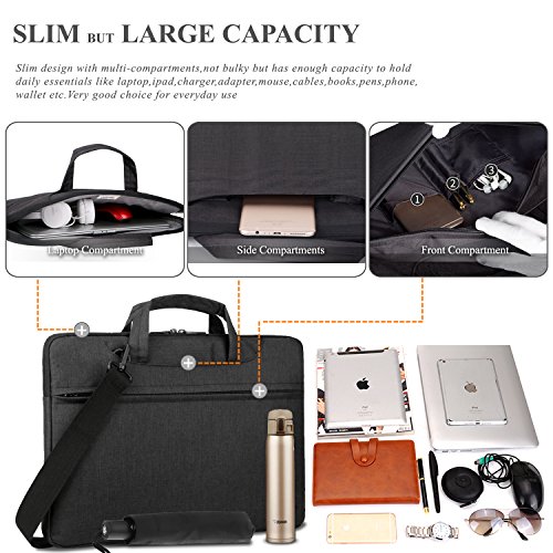 -Slim but Multi-compartment Design,not bulky but has enough capacity with various pockets to hold daily essentials,like pens,phone,wallet,cards. -Hidden-type Handles,easily hidden in compartments,making this shoulder bag to be a laptop sleeve. -Soft thick padding with fluffy lining to protect laptop much better,shockproof,anti-scratch and anti-bump... -Multiple Carrying Ways to carry in comfort,carry it On hand by handles,On shoulder / crossbody by shoulder strap. -Well Water-resistant,keeps inside items dry on rainy day. -Anti-tear,Very lightweight Durable.
