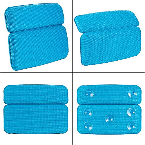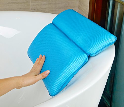 Halovie Bathtub Pillow, Bathtub Pillow with Strong Large Suction Cups Spa Bath Pillow PVC Foam Pillow for Neck Waterproof Bath Pillow (Blue)