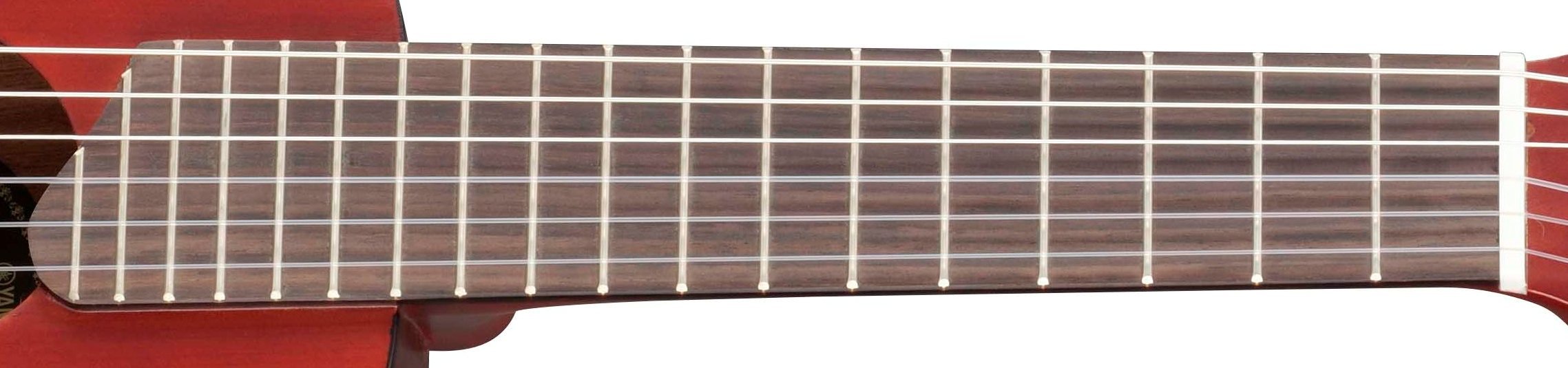 It is a compact body size like ukulele, 433 mm scale nylon string guitar.