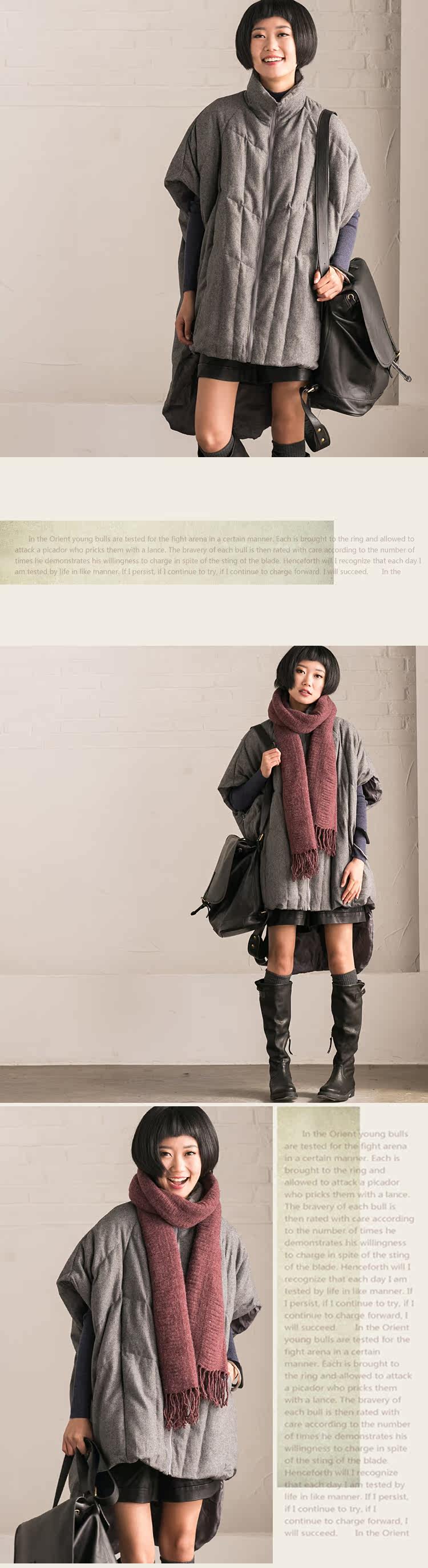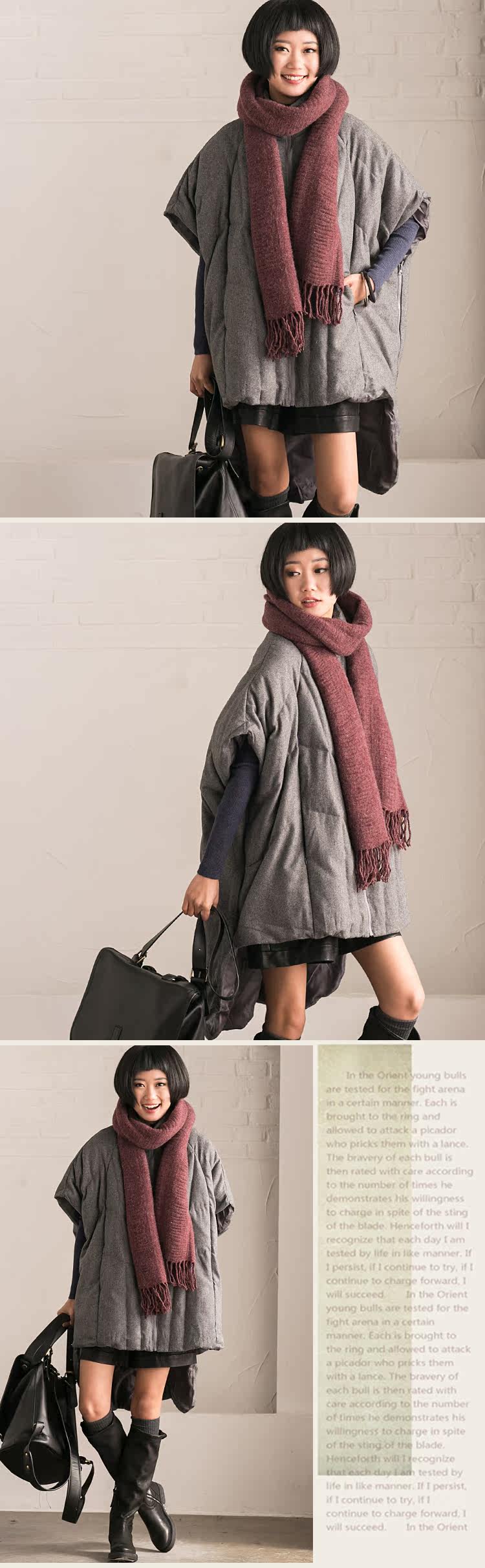 面料:聚酯纤维+羊毛 里衬:聚酯纤维 填充物:羽绒+毛片,手感舒适,无弹力,常规厚度,适宜冬季穿 |