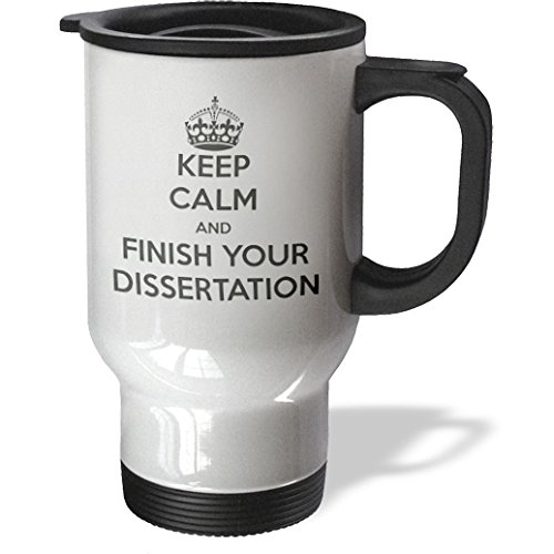 3dRose tm_193304_1 Keep Calm and Finish Your Dissertation White and Gray, Travel Mug, 14-Ounce, Stainless Steel