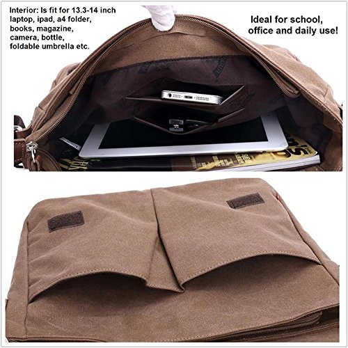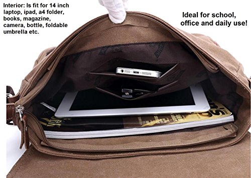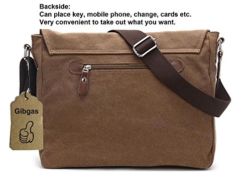 Studio : Gibgas Publisher : Gibgas Binding : Personal Computers Product Description Our product advantages: 1. Wear-resistant Canvas: After several years of using, cleaning, drying in the sun, our bag will be NEVER decolorized. Even if the bag gets wet, your shirt can not be coloured. 2. Front and back: Each side has a small bag with zippers. That is very convenient for you to take out your keys, change, mobile phone etc. 3. Two open pockets: Suitable for 9.7 inch tablet, ipad Air, notebooks, glasses, pens, ID cards, camera etc. Very practical! 4. Interior of 14 inch: Is fit for 14 inch laptop, ipad, a4 folder, books, magazine, camera, bottle, foldable umbrella etc. Ideal for school, office and daily use! 5. Interior of 15.6 inch with laptop compartment: Suitable for 15.6 inch laptop, ipad, a4 folder, books, magazine, camera, bottle, foldable umbrella etc. Moreover, your laptop can be good protected with thickened compartment. 6. Adjustable shoulder straps: adjusted from 74cm-150cm,fit for different height and body type. With 4cm width strap there is no excessive pressure on your shoulders.