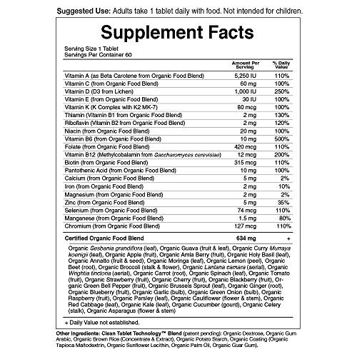 CERTIFIED ORGANIC MULTIVITAMIN: Vegan, gluten free, non-GMO verified whole food multivitamin with NO synthetic binders or fillers