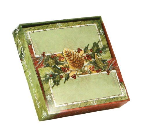 CR Gibson Holly And Pinecones Deluxe Place Cards, 10-Pack