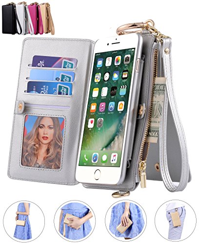 -. Title : SINIANL iPhone 6 6S 7 8 X Plus Samsung Galaxy S8 Plus 2 in 1 Leather Zipper Wallet Multi-functional Handbag Detachable Clutch Case with Folio Flip Credit Card Holder Cover Buckle Purse
