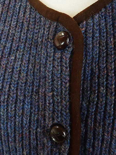 ブルーベースのニットにカラフルな糸が