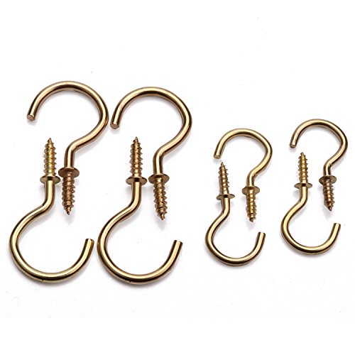1-1/4 Inches Gold Brass Plated Ceiling Screw Hooks Golden color Pack of 20