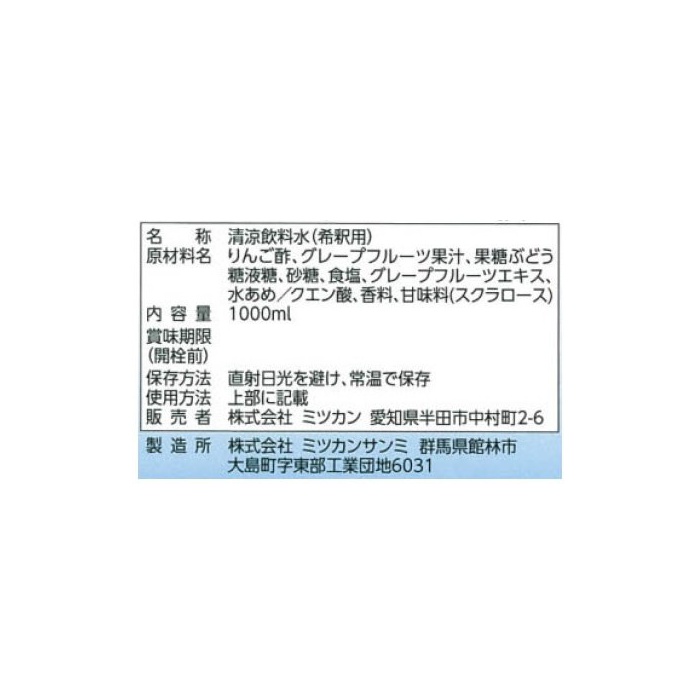 원본상품명: ミツカン ビネグイット グレプフルツ&ソルトビネガドリンク(6倍濃縮タイプ) 1000ml