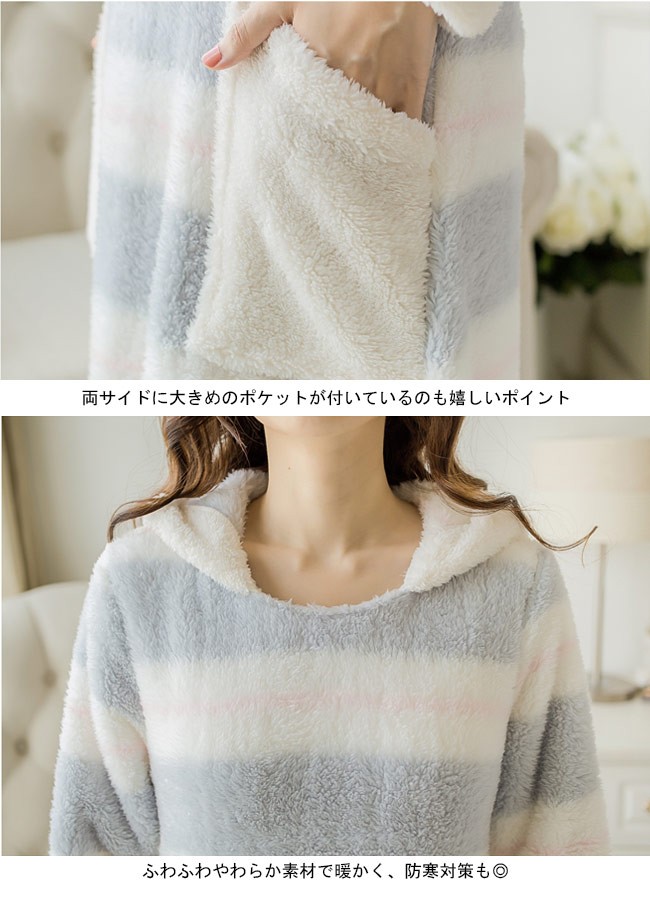 | 商品名 | ルームウェア パジャマ ナイトウェア ロング丈 レディース 兎耳 フード付き 防寒 もこもこ ふわふわ あったか ワンピース 可愛い 秋冬 部屋着 ポケット付き |