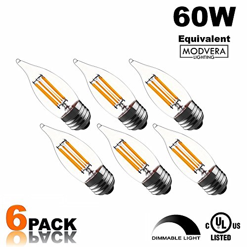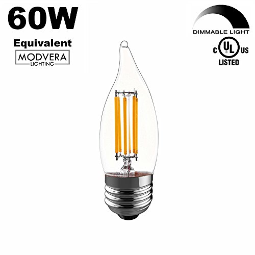 ☄ HIGHEST QUALITY - Our candelabra bulbs are UL Listed and RoHS compliant to the highest possible industry standard. Each is a true 60 watt equivalent while only using 5W of electricity. We offer Bent tip/Flame tip and Blunt tip tip LED candelabra bulbs / chandelier bulbs. All bulbs are guaranteed a lifespan of 30,000 hours backed by Modvera's own seller warranty.