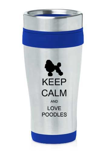 -. Title : Blue 16oz Insulated Stainless Steel Travel Mug Z1259 Keep Calm and Love Poodles