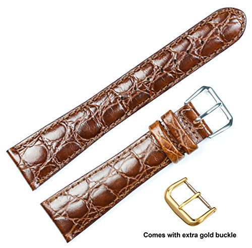 -. Title : deBeer brand Alligator Grain Watch Band (Silver & Gold Buckle) - Havana 17mm