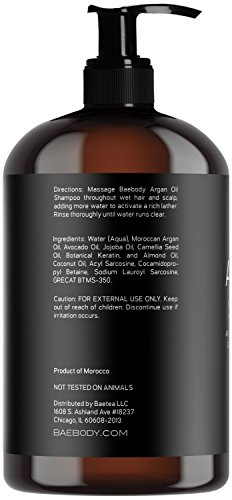 Baebody Moroccan Argan Oil Shampoo 16 Oz - Sulfate Free - Volumizing & Moisturizing, Gentle on Curly & Color Treated Hair, for Men & Women....