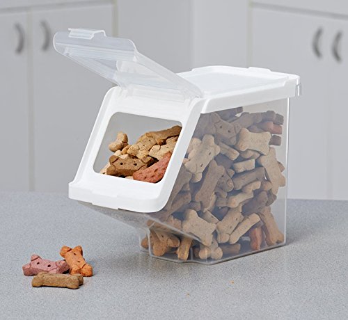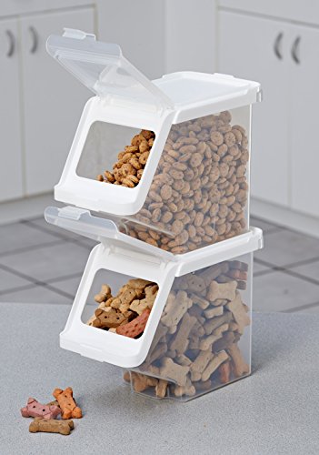 - Feature : Easy to reach treats! perfect for dog, cat and small animal treats, chews and even small toys / Food grade, BPA free, FDA approved materials / Easy to stack. Easy to view and retrieve contents with clear hinged front / Easy to clean; Top shelf dishwasher safe / Perfect for any small item storage including office, craft and hobby, garage and more