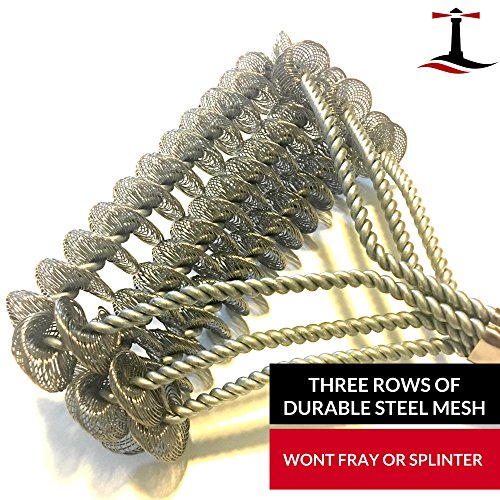 Safe No Bristle Gas Grill BBQ Brush - Rust Proof Triple Stainless Steel Woven Wire Perfect for Weber Char Broil Dyna-Glo Steel Porcelain Ceramic Grates - Long Lasting/Heavy Duty/Barbecue Grill Brush