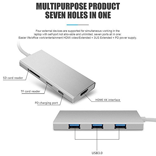 -. Title : Tasbel USB Type-C Hub, 7 in 1 Multi-Port USB C Combo Hub Adapter with 4K HDMI Output,USB-C Charging Port,3 USB 3.0 Ports,SD/Micro Card Reader (Silver)