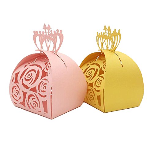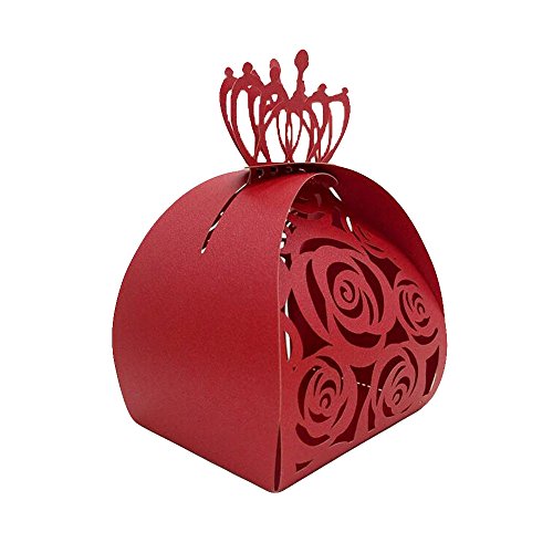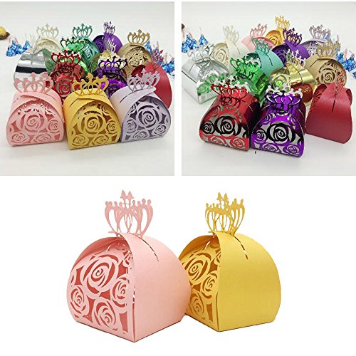 WOMHOPE® 50 Pcs - Crown Lock Rose Candy Box Hollow Laser Cut Roses Flowers Candy Box Chocolate Candy Wrappers Party Favors for Bridal...