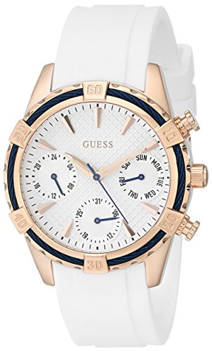 -. Binding : Watch -. Brand : GUESS -. Color : Rose Gold Tone/Blue -. Department : womens -. EAN : 0091661449529 -. Feature : Comfortable White Silicone Watch with Multi-Function Dial featuring Day, Date, 24 Hour Int'l Time, Blue Top Ring and Rose Told-Tone accents / Durable mineral crystal protects watch from scratches / Quartz Movement / Case Diameter: 34.5mm / Water Resistant To 99 Feet -. Label : Sequel International -. Manufacturer : Sequel International -. Model : U0562L1 -. MPN : U0562L1 -. PackageQuantity : 1 -. PartNumber : U0562L1 -. ProductGroup : Watch -. ProductTypeName : WATCH -. Publisher : Sequel International -. Studio : Sequel International -. Title : GUESS Women's U0562L1 Comfortable White Silicone Multi-Function Watch with Day, Date & 24 Hour Int'l Time -. UPC : 091661449529