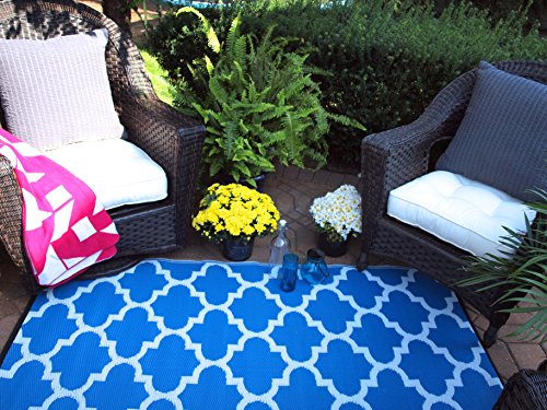 This curvaceous design suggests a Moroccan theme in the Tangier rug. Spruce up the living room or kitchen with this rug, or embrace the exotic side by adorning it with some pillows outdoors. These beautifully crafted rugs are made following the fair trade principles. Fab Rugs add a touch of elegance to your home decor. They are made using premium quality recycled plastic straws which are tightly woven together to offer strength, softness and beauty. Being plastic, moisture will have no effect on the mat and it will not attract mildew.Feature