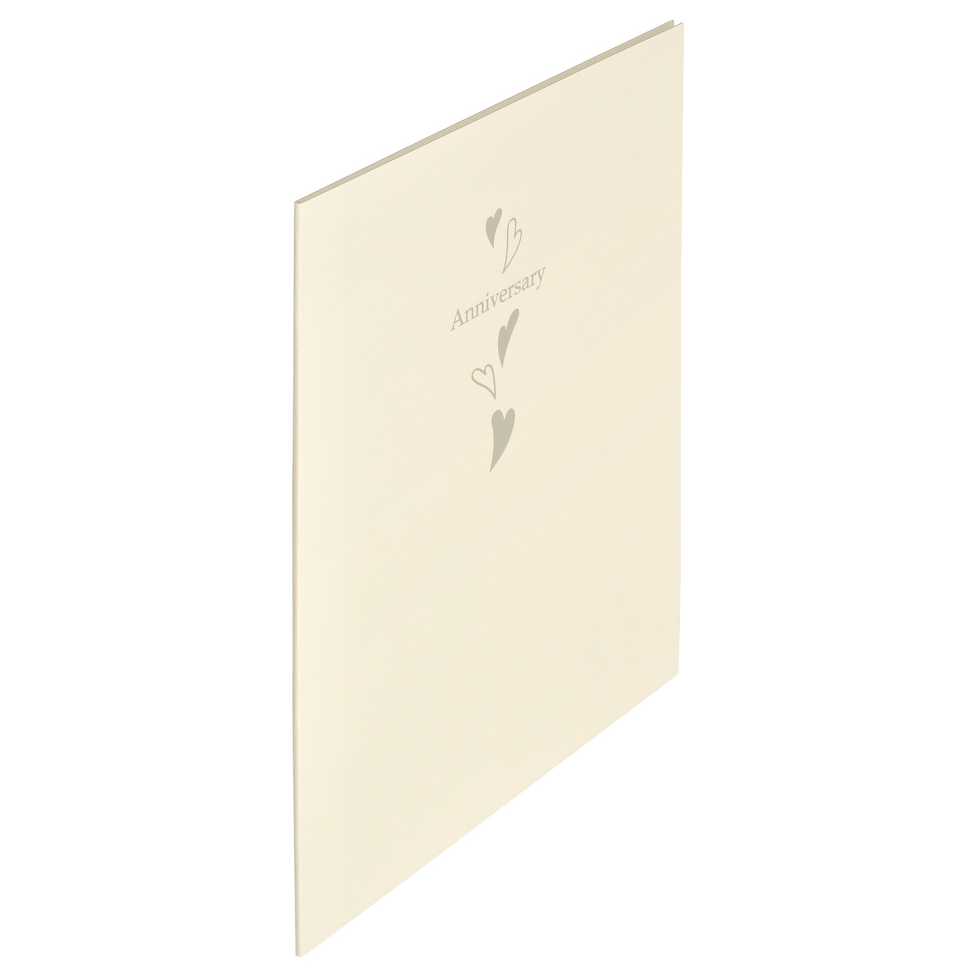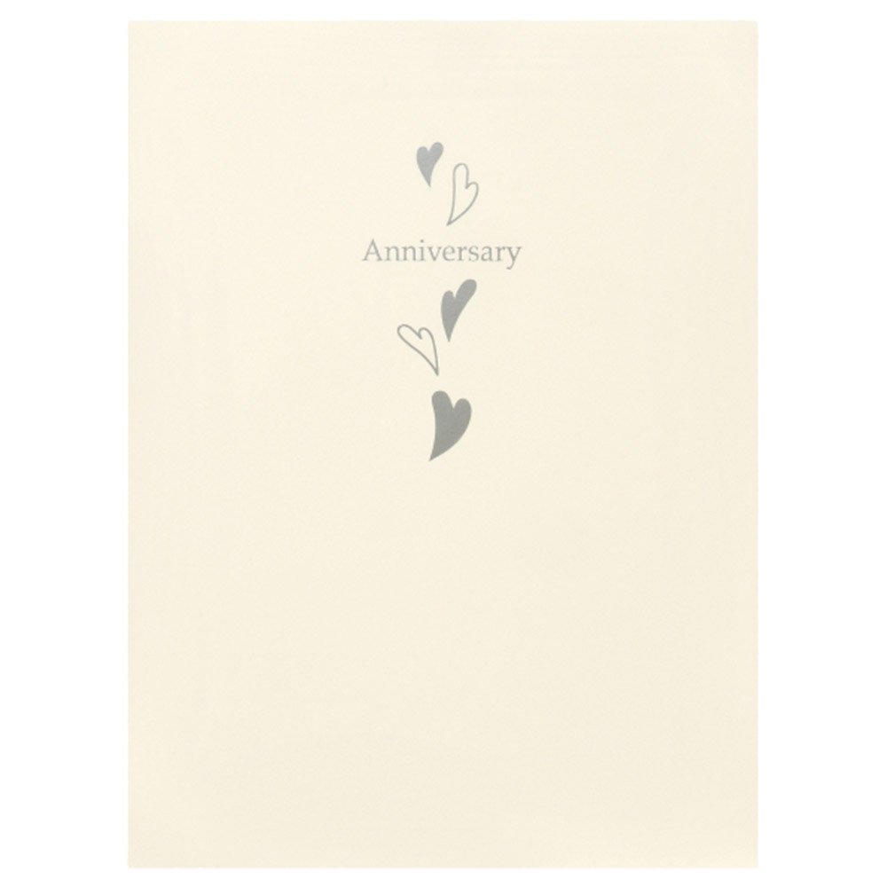 Cover on cover on the white cover is silver foil "Anniversary" and it has four heart patterns.