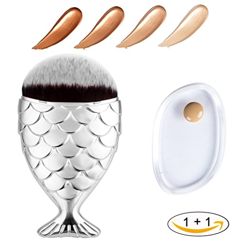 -. Title : Affei Fishtail Bottom Makeup Brush Fish Scale Make up Brush Powder Blush Foundation Cosmetic Brushes Tool + Silicone Makeup Sponge