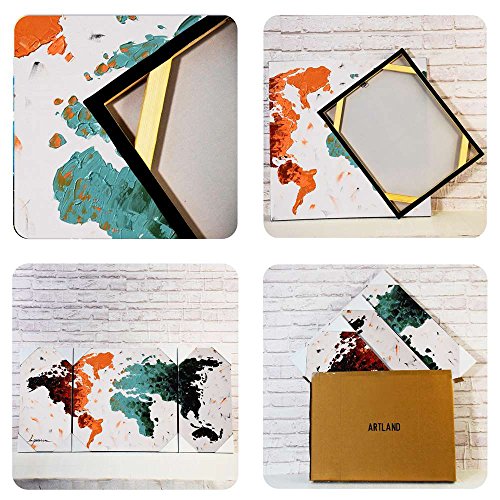 -. Title : ARTLAND Modern 100% Hand Painted Abstract Oil Painting "World Map" 3-Piece Wall Art on Canvas for Living Room Artwork for Wall Decor Home Decoration 24x48 inches