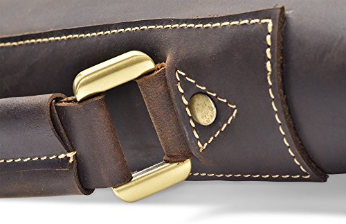 -. Feature : Genuine cow leather treated with Crazy-Horse technique / Solid brass hardware / Adjustable, padded and detachable leather shoulder strap / Electronic compartment for iPad or up to 15" laptop / 1 Zipper pocket in the back, 2 Inside pockets, 2 pen holder, and a zipper pocket